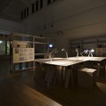 マルチメディアのインスタレーション(ビデオ、机、本棚、資料ほか)